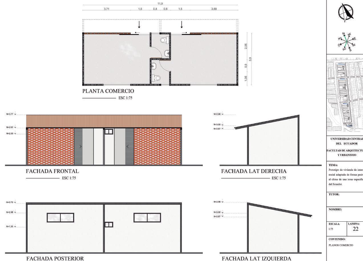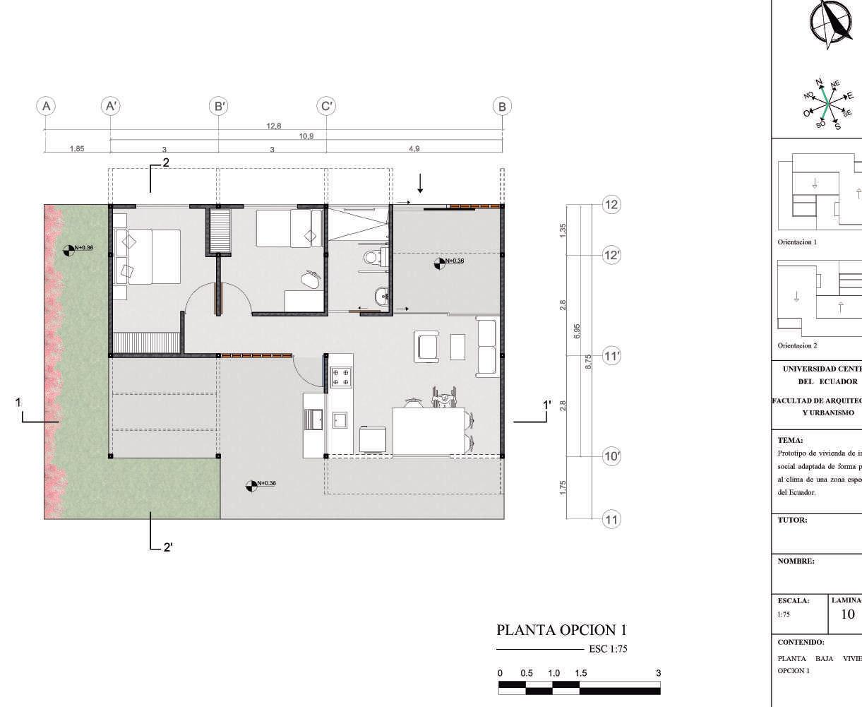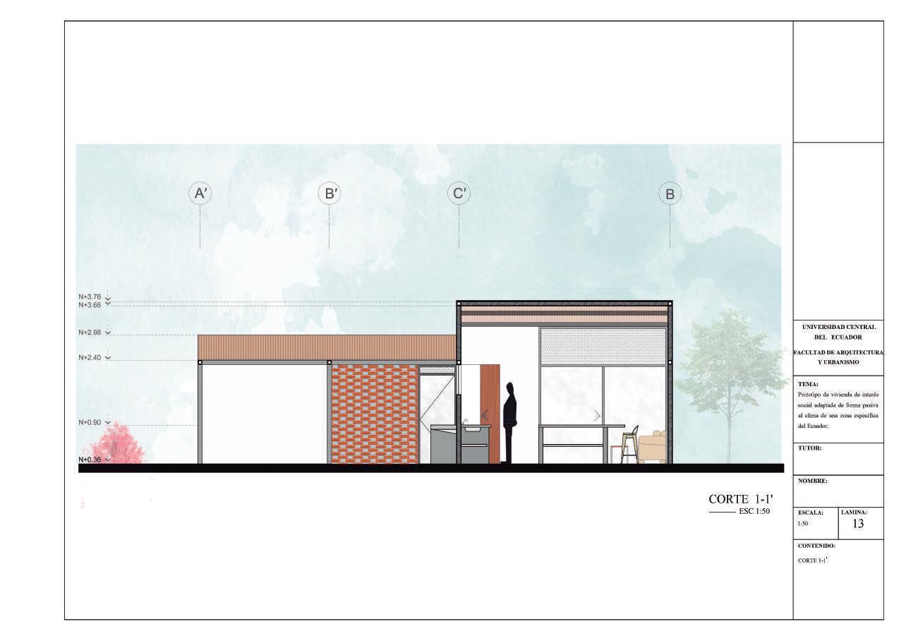 Prototipo de vivienda de interés social adaptada de forma pasiva al clima de una zona específica del Ecuador.
