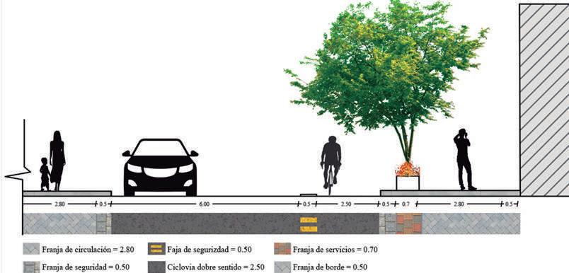 Ciclovía en doble sentido que llega hasta el remate final del terreno Acera peatonal