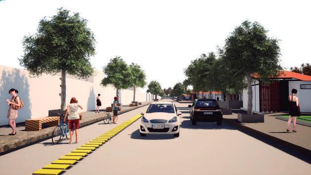 Calle peatonal y en las jardineras que recorren todo el proyecto.