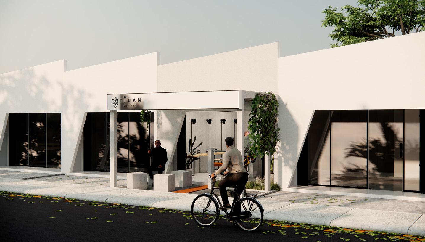 Tjuan Coffee is a coffee shop targeted at bicycle users as an adaptation to current trends. Provisions of outdoor space as a bicycle parking area and a place for cyclists to rest.