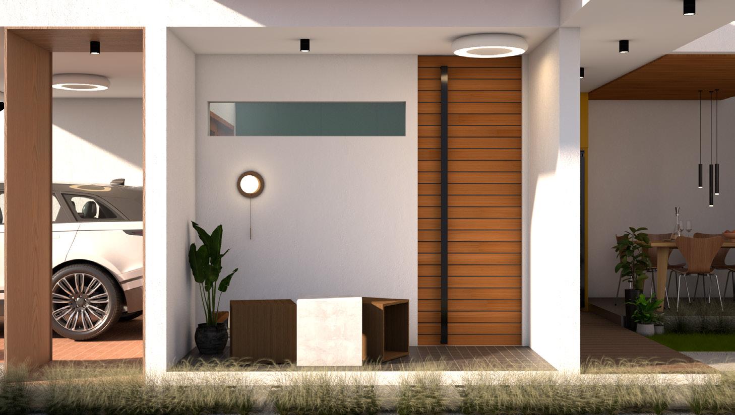 Purpose: Design a compact house for a family of 3 family members equipped with a work space and a rooftop garden.