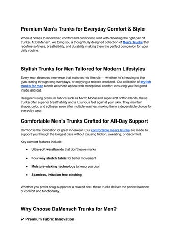 DaMENSCH redefines the men’s fashion landscape with innovative and sustainable clothing that blends style, comfort, and quality. From premium innerwear like men’s briefs, trunks, and boxer briefs to stylish topwear such as waffle oversized T-shirts, pique polos, and sweatshirts, we cater to every wardrobe need. Explore our bottomwear collection featuring versatile track pants, lounge shorts, and linen pyjamas, ensuring you’re always dressed for comfort and style.