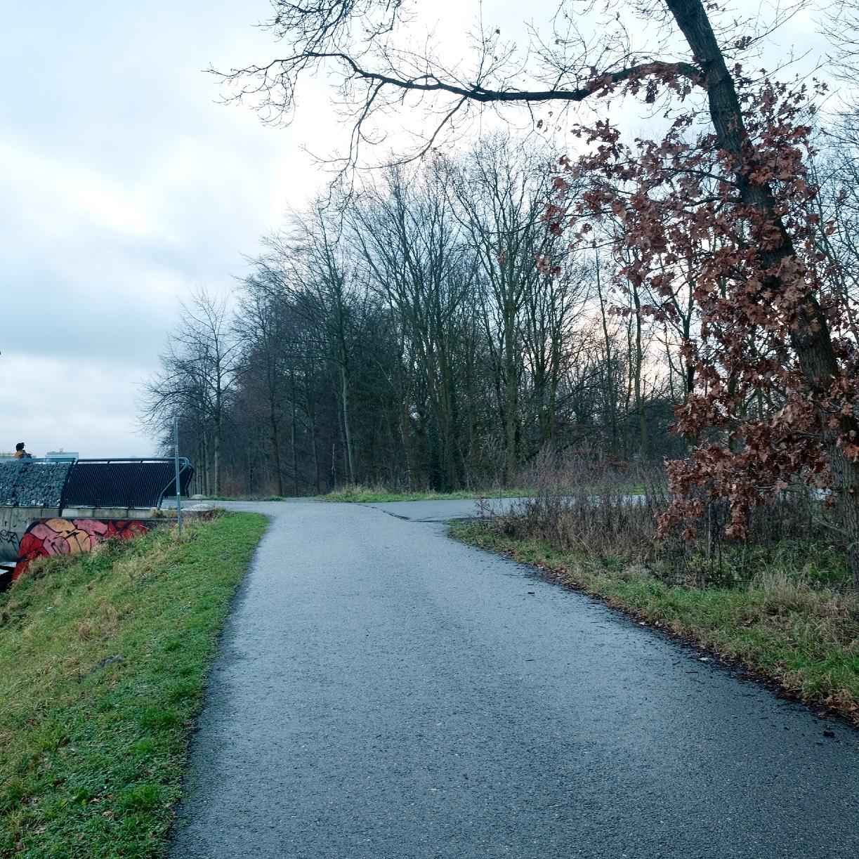Het pad dat bij Buiksloot het park ingaat richting Roze Tanker is nog niet af, maar wel weer open. De entree voert naar het circuit dat Adriaan Geuze1 ontworpen heeft voor het Noorderpark. En daarom krijgt de entree de stijl van het circuit, herkenbaar aan breed asfalt, betonnen randen, opgeplakte klimopblaadjes, en speciale banken en lantaarns. Geuze ziet het circuit als een essentieel element van het park.2 Voor Geuze is de entree onderdeel van het circuit waar mensen wandelen, skaten, joggen, fietsen, flaneren en elkaar ontmoeten. Maar voor anderen is het een doorgaande fietsroute.