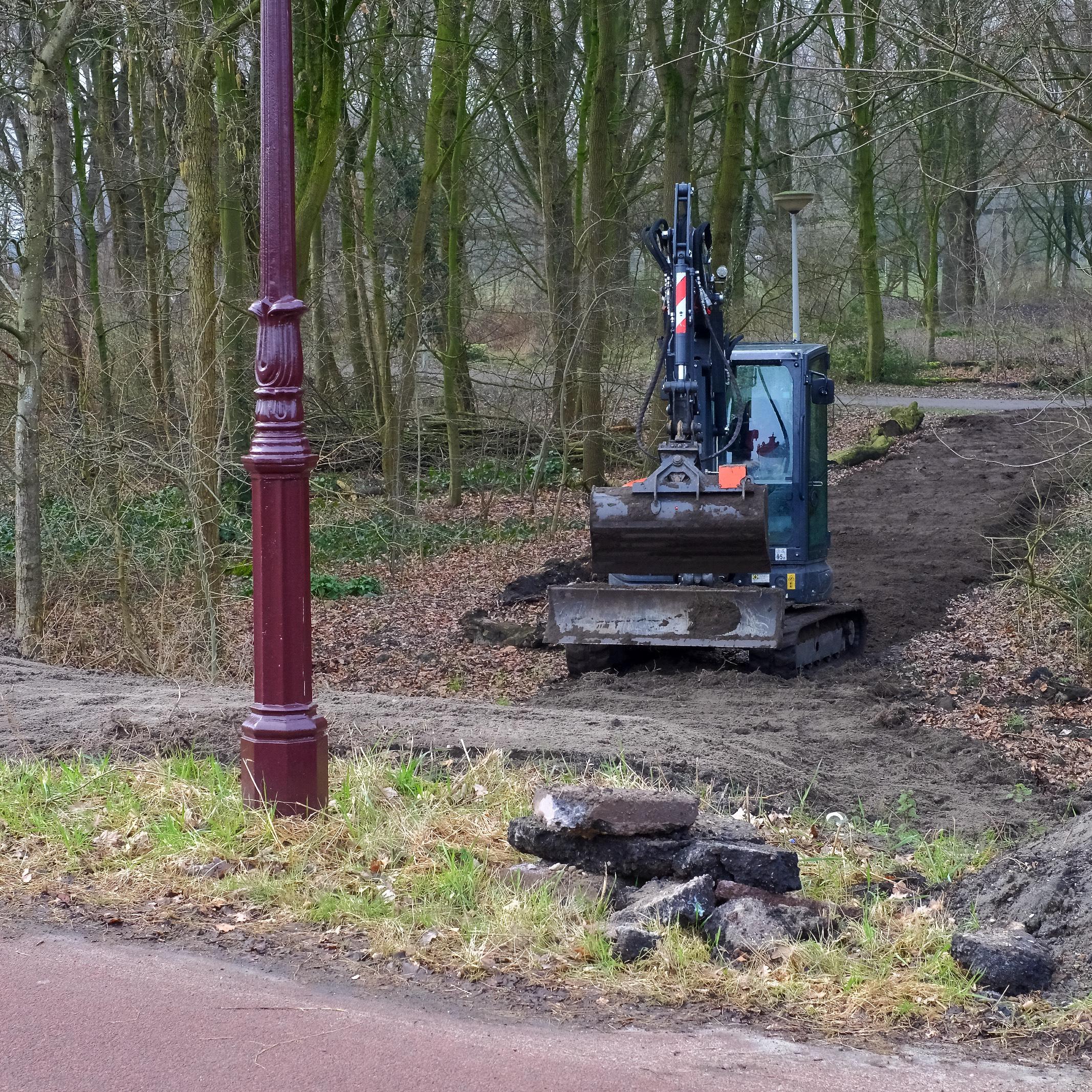 Trap weg, asfalt verwijderd. Het ophogen was niet voor een nieuw pad; het was parkgrond, 8 maart 2023