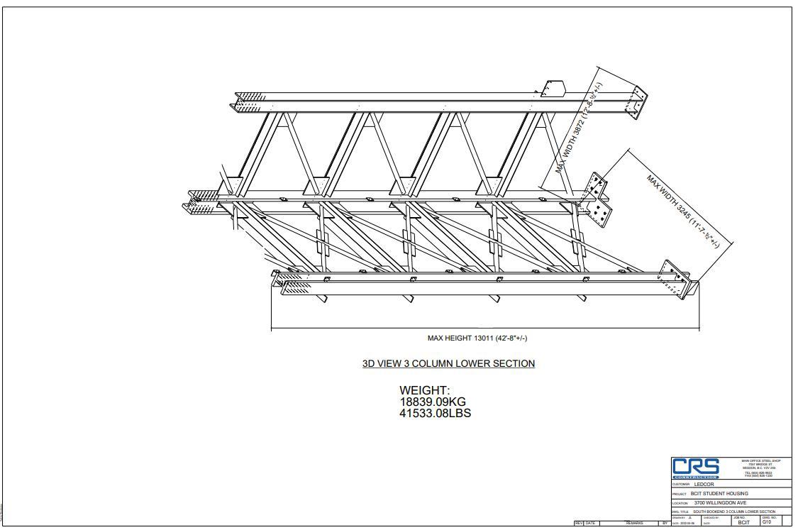 It is important to understand the current state of the assembly, so that, new methods of construction can be revised and compared to this current version. This steel tower is part of a project building in Vancouver, British Columbia, that will serve as serve as a student residence for an academic local institution. The current phase of construction is the planification and preconstruction coordination. This means that the project is experimenting with alternatives so it can be completed at the most efficient time. These alternatives include a prefabricated steel frame superstructure, mas timber construction and traditional cast-in place construction.