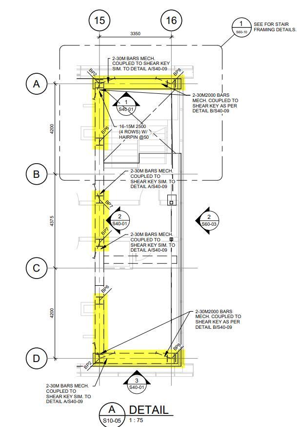 This is possible as at midspan, the connection between Level 6 and Level 7 contains the main bolt assembly and steel plate to column connection in the entire assembly. Taking Figure 5 as reference, in plan view in each of these portions from Figure 3, would represent both corners