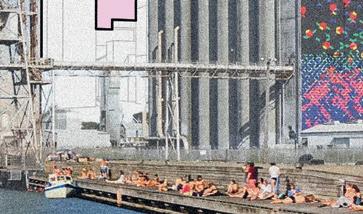 dad & Tom Drugan entworfen wurde und die Gesellschaft im Wandel symbolisiert. Die Inszenierung dieses Kunstwerks ist der Ausgangspunkt für die Gestaltungsideen in diesem Entwurf. Ein wichtiges Ziel war es, einen Teil der fehlenden Biodiversität zurückzubringen, indem die bestehenden Feuchtgebiete in der Gegend einen großen Teil des Landes zurückerobern und die anstehenden Bauentwicklungen stark beeinflussen. Um eine bessere Lebensqualität auf diesem Projektstandort zu schaffen, müsste er außerdem in seiner Nutzung viel gemischter werden. Die Idee, Nutzungen zu platzieren, die Menschen aus allen umliegenden Quartieren anziehen, hat den gesamten Entwurfsprozess geleitet. Das Ergebnis ist ein stark gemischter, blau-grüner Superblock, der für und von allen sozialen Schichten und für ein Leben im Einklang mit der Natur und den Vorzügen der Urbanität gestaltet ist.