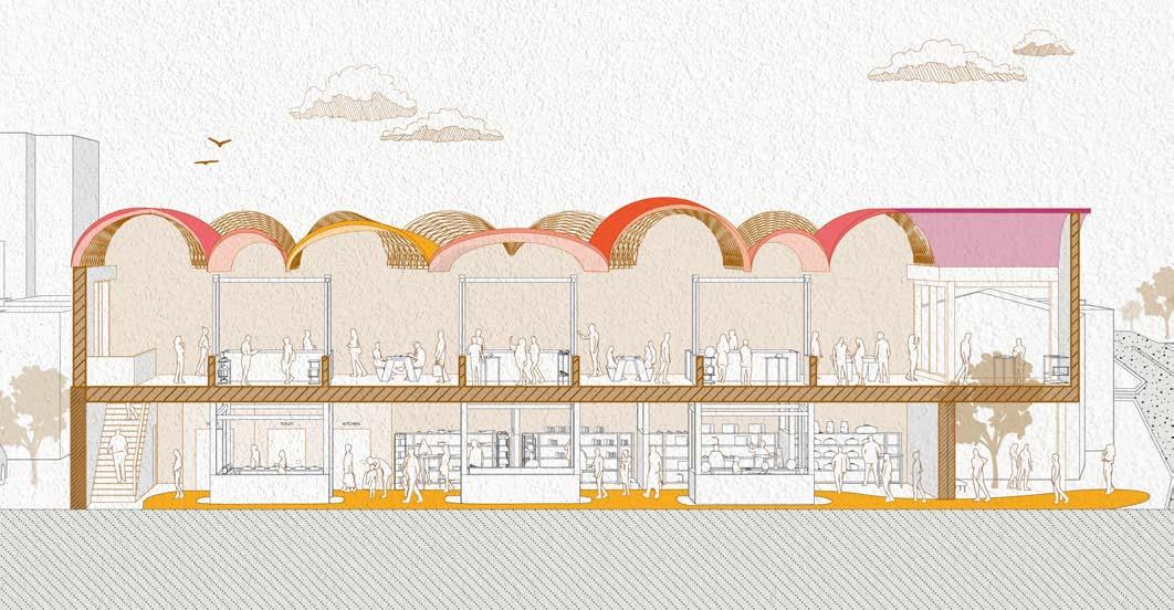 The brief entails increasing density without demolishing any structures within the Mill Road community in Cambridge. I proposed designing a community market and a back-ofhouse creative development dedicated to the Mill Road Traders Association, comprising all independent shop owners in the area.