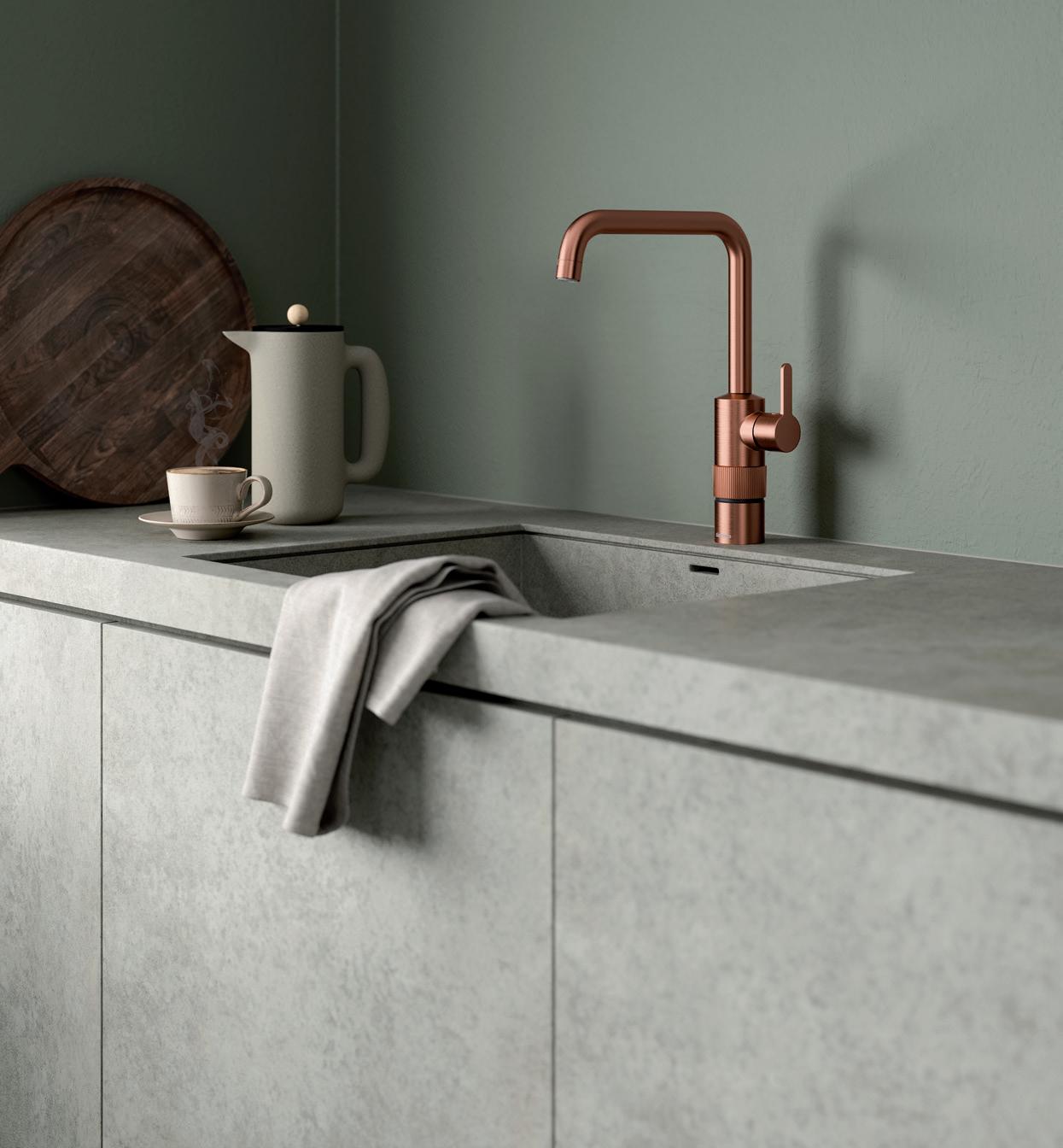 Silhouet Instant kombinerar en klassisk köksblandare och en kokande kran i en snygg, säker och användarvänlig design. Så vänta inte: Ta vara på en ny dag med kokande vatten till hands.