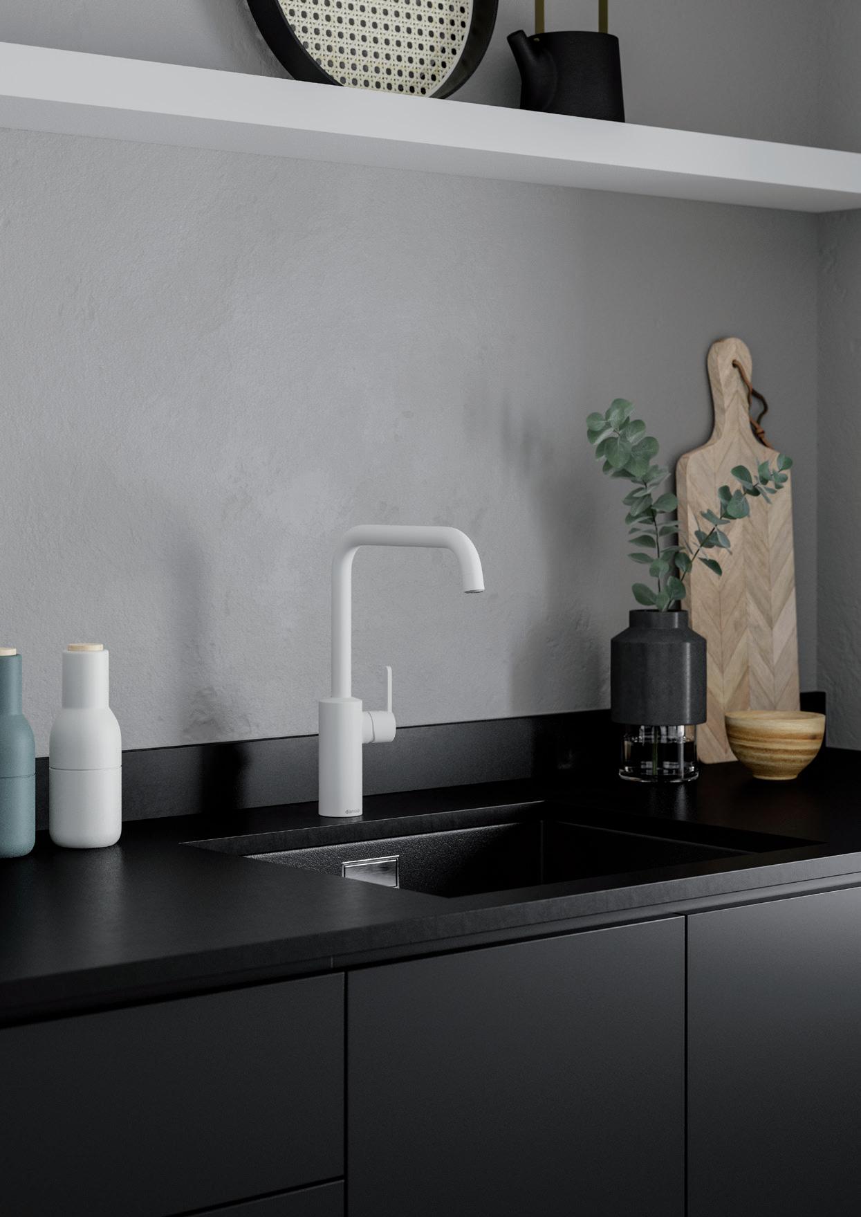 Mattavalkoinen Valkoinen on uusien alkujen väri. Valkoiset hanat korostavat suunnittelun innovaatiota, jossa väri erottuu edukseen yksinkertaisissa designeissa. Ihanteellinen valinta vaalean keittiön tai kylpyhuoneen korostamiseen. Tai kontrastiksi värikkäille pinnoille. Sulavaa mattapintaa on mukava koskettaa. Kestävä erityiskäsitelty pinta on yllättävän helppo pitää puhtaana ja valkoisena.