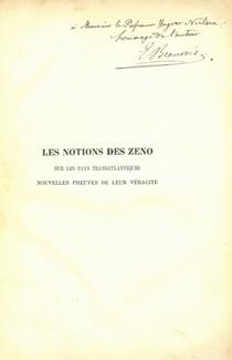 107. (ZENO). BEAUVOIS, Eug. : Les notions des Zeno sur les pays transatlantiques.Nouvelles preuves de leur véracité. Louvain. 1904. Imprimerie Polleunis & Ceuterick. Leks8vo. Originalt typografisk kartonasjebind. 65 s.