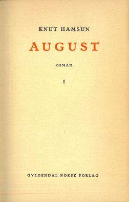 40. HAMSUN, Knut : August. Roman. I-II. Oslo. 1930. Gyldendal Norsk Forlag. 8vo. Elegante lysebrune skinnryggbind med opphøyde ryggbånd, ryggforgylling, marmorerte dekler, topp gullsnitt. Bundet med alle omslagene. 239 ; 256 s. Bindene signert Refsum. dam75797