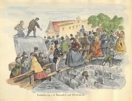 109. (AKERSHUS). HANNO, Wilhelm von : Fra Skøitebanen i Christiania. Christiania. 1875. Liten tverrfolio. Originalt farvelitografi klebet opp på stiv kartong. Kartongens størrelse : 34,4 cm X 25,8 cm. Fra mappen “Billeder af Norges Natur og Folkeliv, ledsaget med oplysende Text af forskjellige Forfattere”. Med tekst av Johan Bøgh. dam53123 950,-