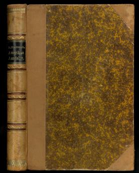 37. HAMSUN, Knut : Fra det moderne Amerikas aandsliv. København. 1889. P. G. Philipsens Forlag. 8vo. Samtidig skinnryggbind med tittelfelt i svart skinn, opphøyde ryggbånd, ryggforgylling og marmorerte dekler. (8), 255, (1 blank) s.