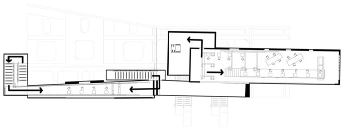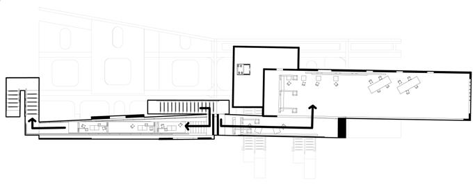 The deadline design makes the interior space less contact with pedestrians in other spaces, which is suitable for visitors to read and work quietly.
