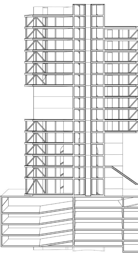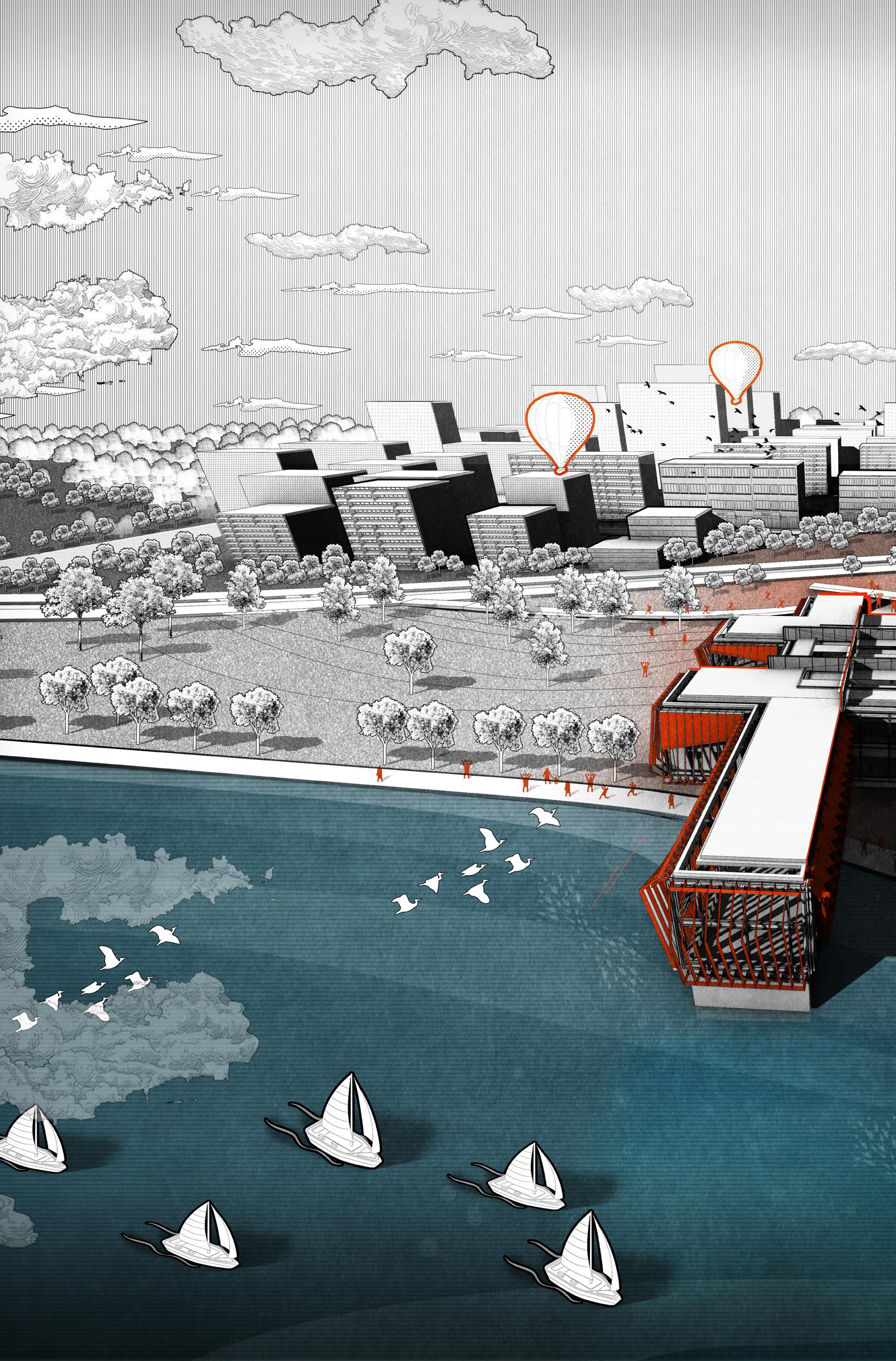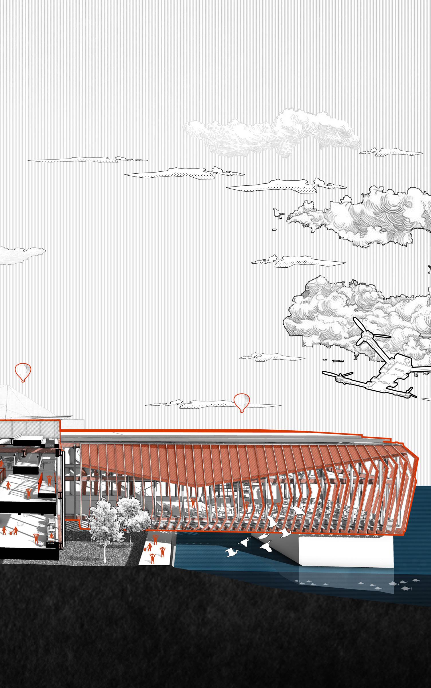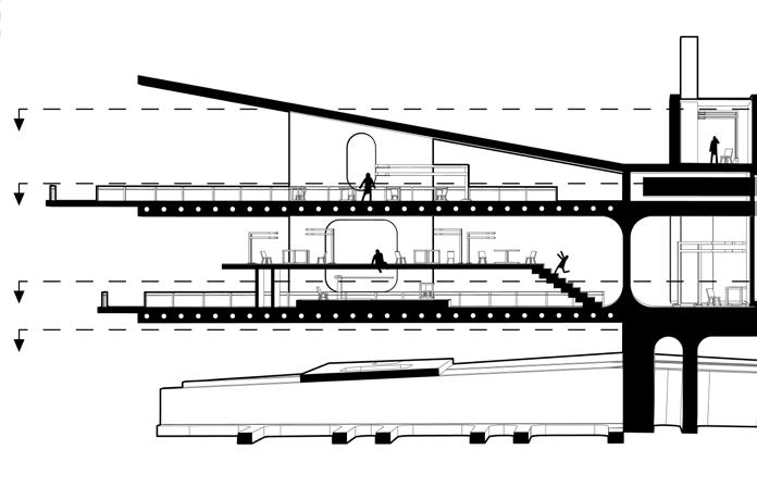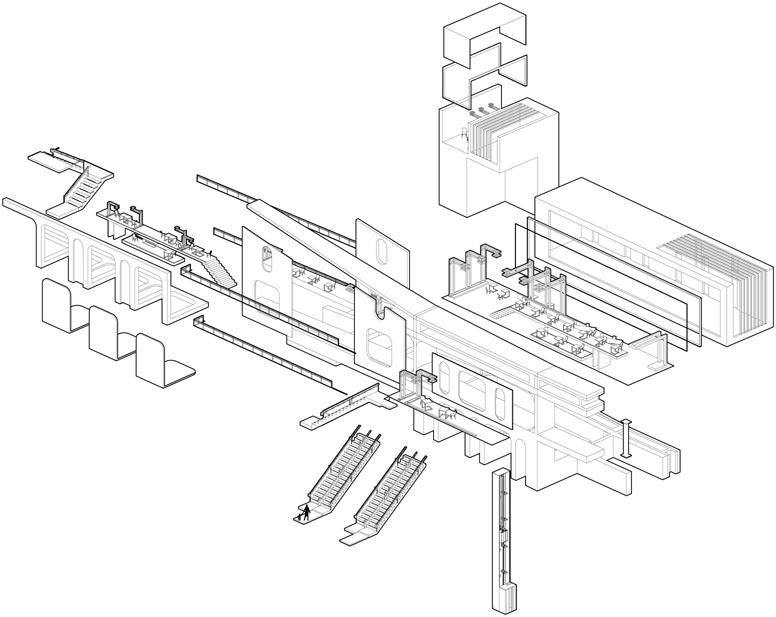 The upper and lower connection design allows the development vertically and horizontally, but the spiral pedestrian passage makes it the initial shape of the three-dimensional city.