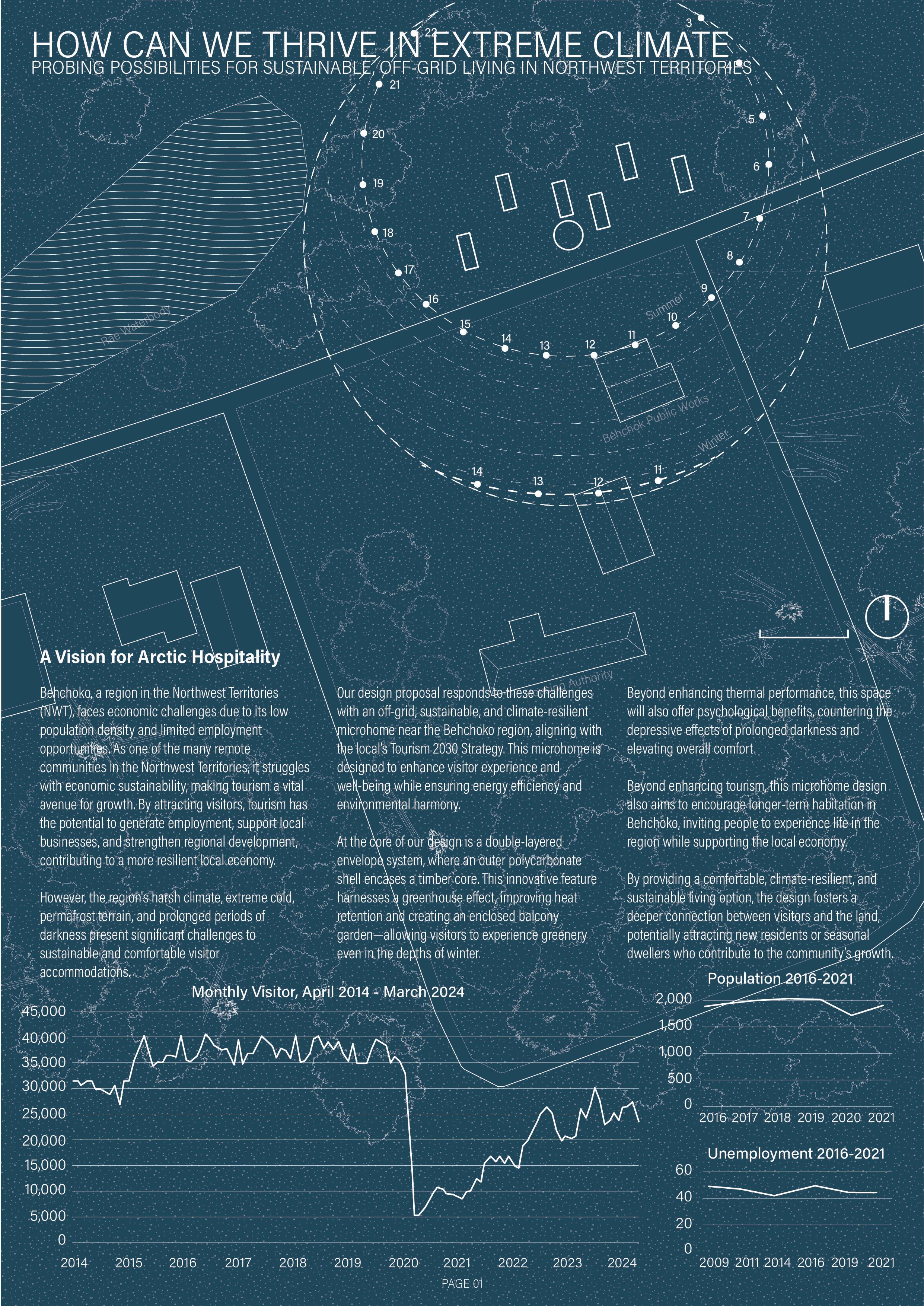 The task was to design a sustainable and adaptable accommodation that aligns with the Tourism 2030 Strategy, supporting economic growth while integrating with the region’s natural and cultural landscape. The structure needed to withstand Arctic conditions while providing a unique, comfortable living environment for both short-term visitors and potential long-term residents.