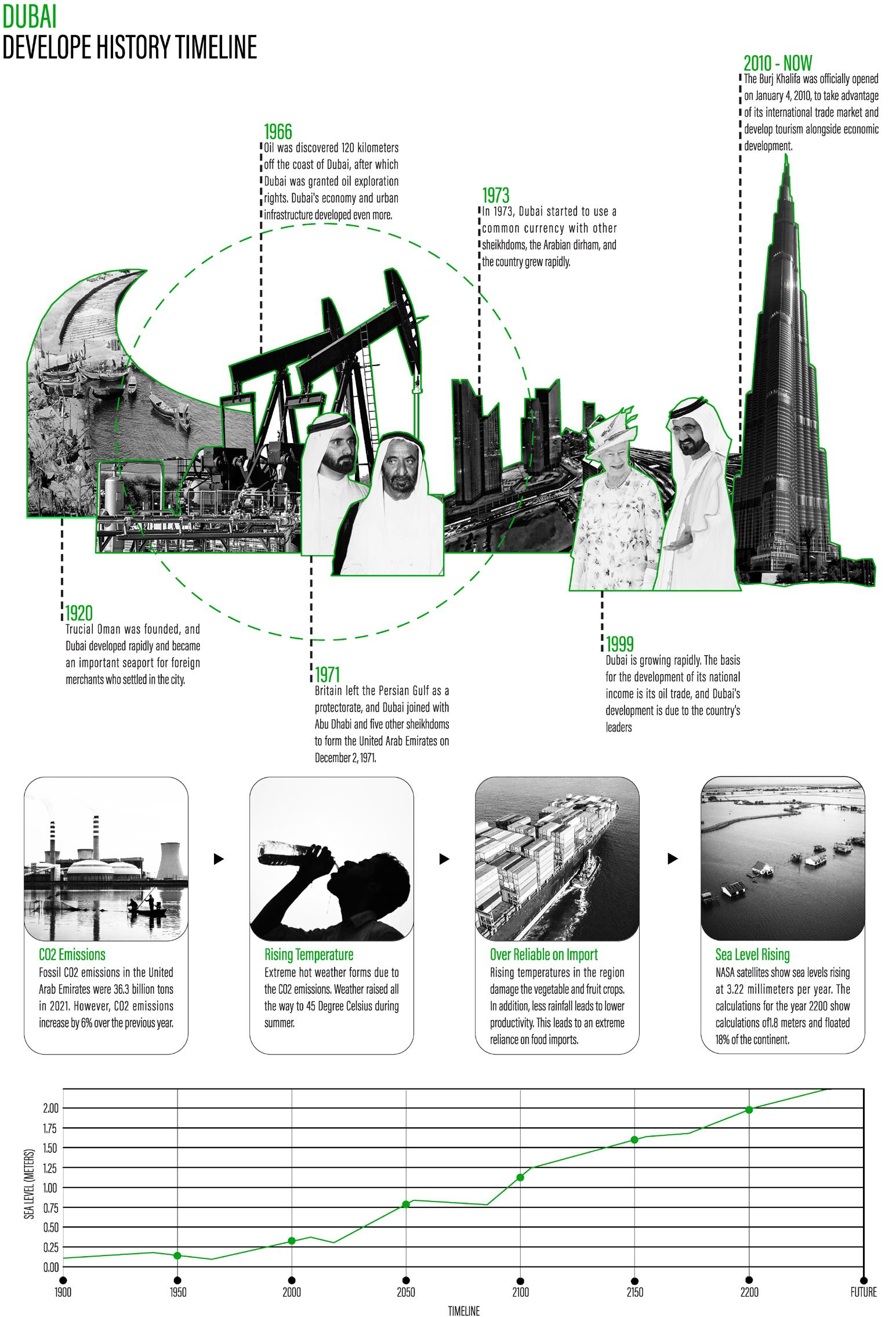 Sea level observation work began since 1850 in Dubai. According to the record, the average global sea level rise is at least 7 inches annually, and the rising rate has been accelerating since 2000. As one of the world's most highly developed coastal areas, sea level rise is an urgent problem to be solved.