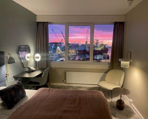 Hotellet ligger tæt på alting: færgerne, jernbanestationen og de mange butikker, og der er frit udsyn over det pulserende liv på havnen og ikke mindst Kattegats blå bølger. Tog inkl. i D-kort og Dana Cup-kort. Hotellet har egen restaurant og bar.