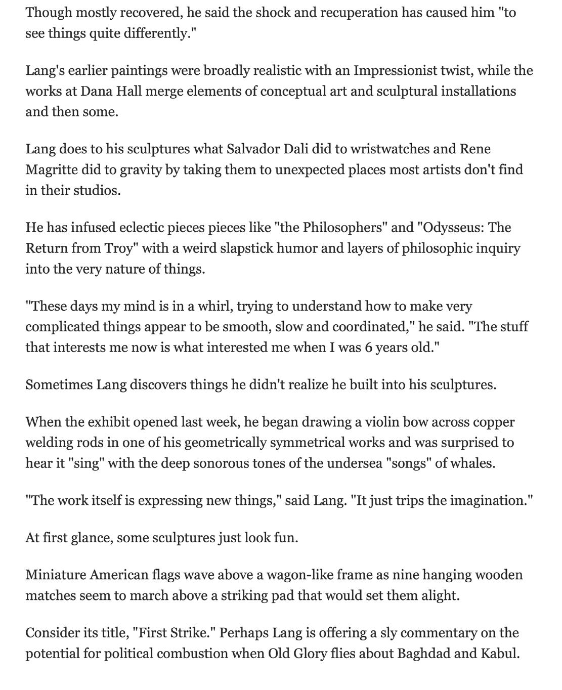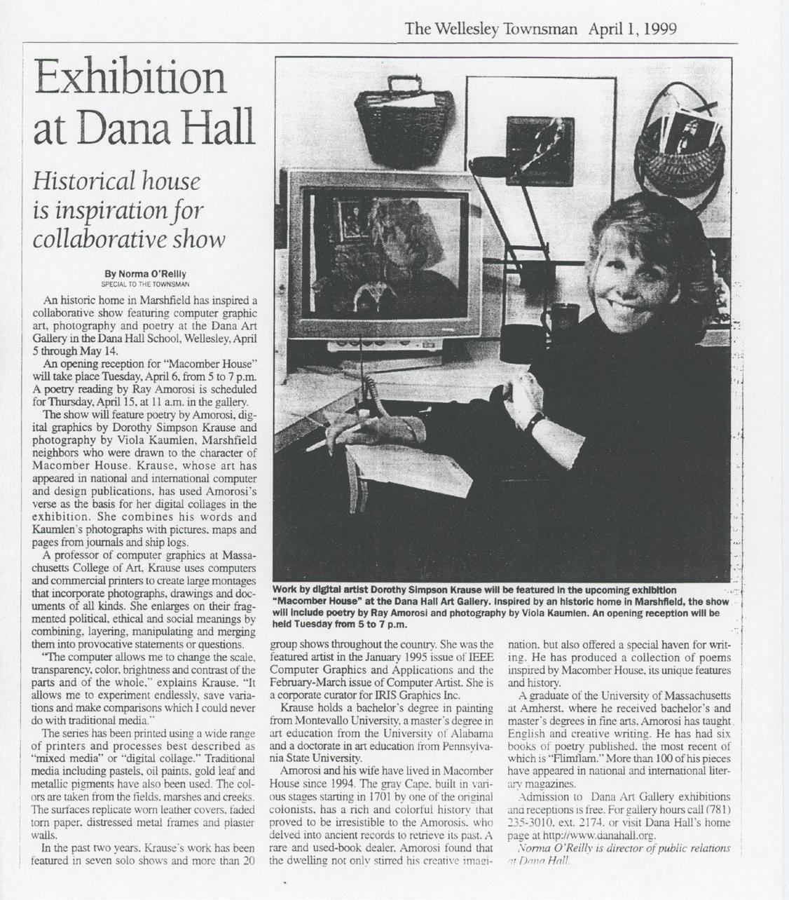 The gallery was described in a Boston Globe article as being “One of the hidden treasures of the western suburbs. . . a launching platform for several artists who have built widespread reputations.” (Boston Sunday Globe, April 16, 1995)