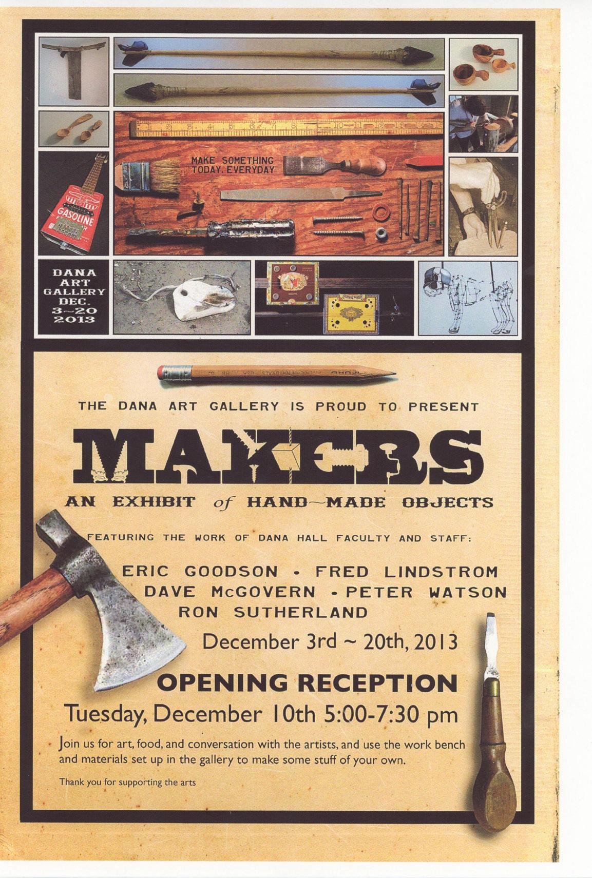 Other favorite shows include The New Weird America; kinetic sculpture by artist David Lang; RetroObsolescence (a display of outdated technology and vintage advertising); Not Just Us, an exhibit of the work of social justice artists from the Boston area and beyond; and a series of “Maker” shows where staff and faculty who work in every medium from hand-carved wooden bowls, to cigarbox guitars, to sculpture, quilts, and clothing brought their creativity to the gallery.