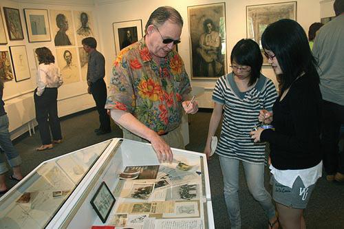 Gallery visitors Matt McCracken (left) and long-time Social Studies teacher Mary Cameron (above)