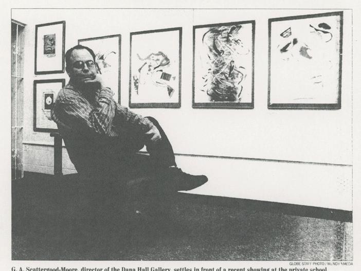 G.A. Scattergood-Moore taught at the Dana Hall School from 1968-2006, serving as Art Department Head from 1968-1978. In addition to founding the Gallery, he curated numerous shows at other Boston-Area galleries, created and exhibited his own work, and inspired nearly 40 years of student artists at Dana. He continues to be a presence on campus during the annual Alumnae Art Show, was the inspiration for the G.A. Scattergood-Moore Artist-in-Residence program and is currently preparing for another major exhibition of work by Helen West Heller.