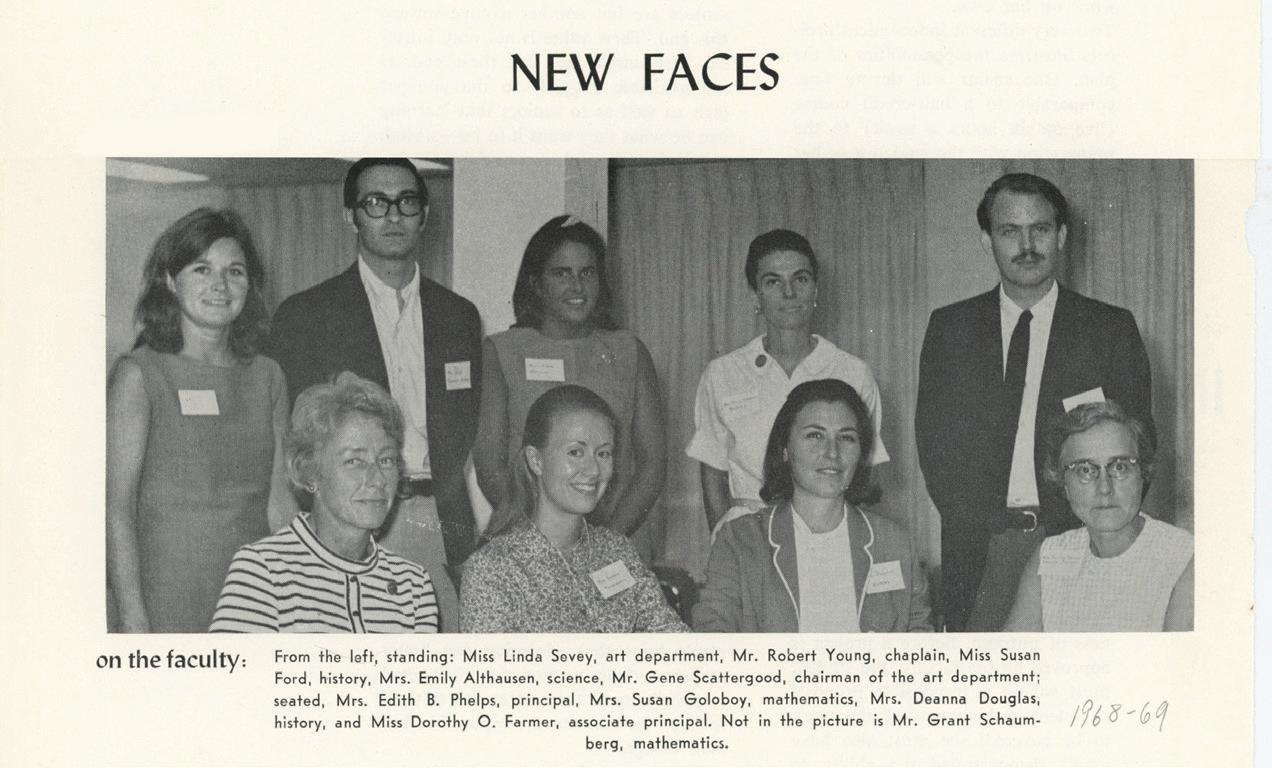 When Edith Blakeslee Phelps (Head of Dana Hall School, 1963-1973) hired me for the position of Chair of the Art Department in 1968, one of her goals was to strengthen the school’s visual art program and increase its visibility within the Dana community and beyond. “Edie” Phelps brought her relaxed atmosphere to Dana, her (determination to empower?) love for young women, high standards of education, and a progressive concern for current and world events. Martin Luther King Jr had recently been assassinated-actually the day before my job interview with Edie--and the East Coast was in the mist of student protests against the war in Vietnam. During her tenure she made many changes to the school, including doing away with required school uniforms and daily morning chapel.