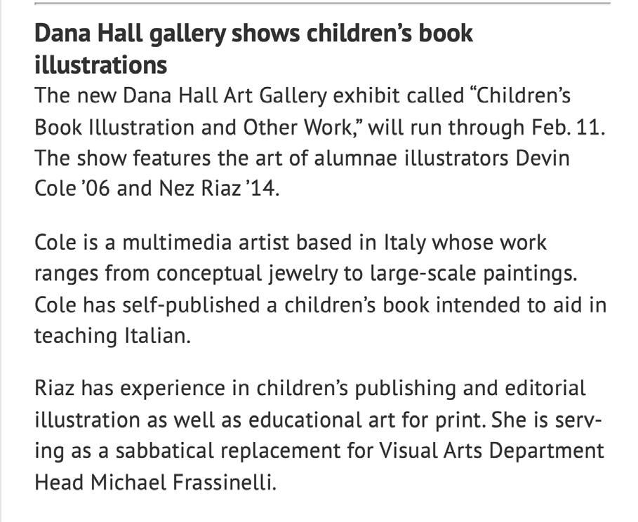 entertained, moved, amused and occasionally confused and challenged by the diverse work found in the gallery. Thanks, of course, to the school and its many departments, and especially Katherine Bradley, our current Head of School, for her continued support of the program and her work on the Classroom Building renovation project which has helped create a new home for the gallery for at least the next 50 years.