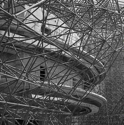 The structural support for the wide span roof is given by the space frame where it touches the ground it has boot column and a combination of V and tree columns. The need for V- columns is due to the shape of the structure which go down in certain places. The span between the columns range from 26 to 29m. The internal buildings are supported by a combination of load bearing walls and columns.
