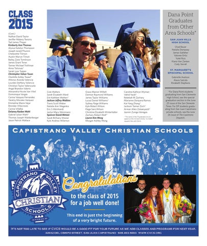 Dana Point Graduates from Other Area Schools* SAN JUAN HILLS HIGH SCHOOL Chad Bauer Natalie Dempsey James Gallaher Valoree Ortiz Yulet Ruiz Kiana Van Zanten Cody Verrall ST. MARGARET’S EPISCOPAL SCHOOL Gabrielle Axelson Alexis Salcido Elizabeth Stephens