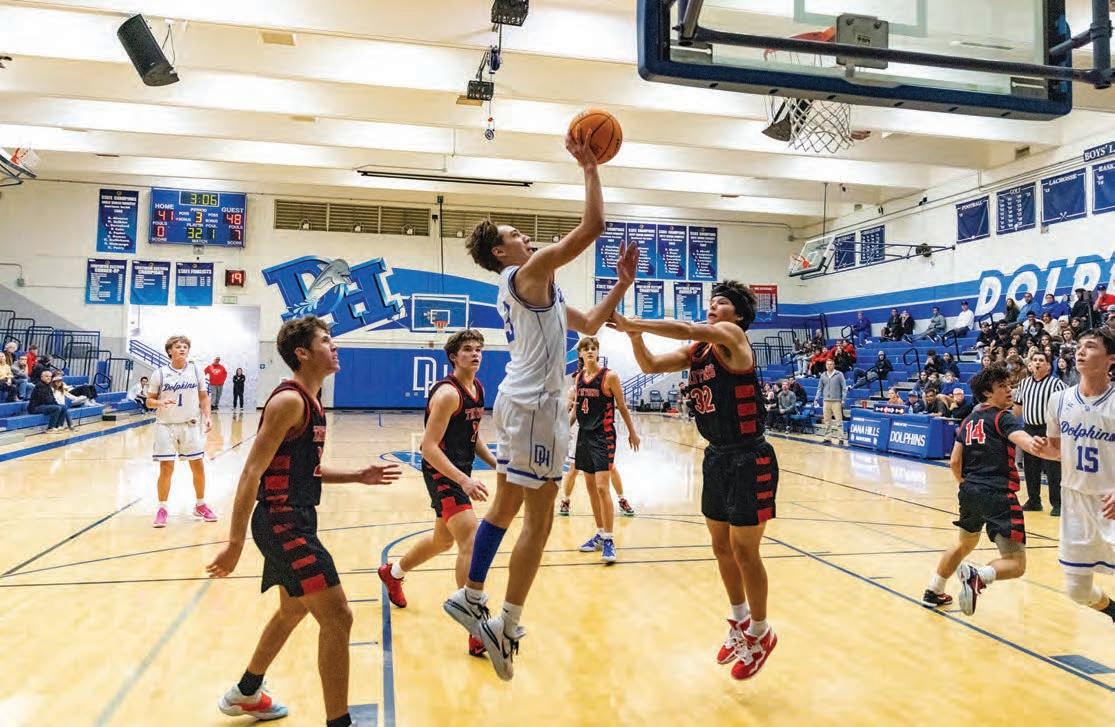 The Dana Hills boys basketball team finally hosted its first home game of the season on Dec. 16, and the Dolphins earned their third double-digit win in a row with a 12-point win over San Clemente, 69-57.