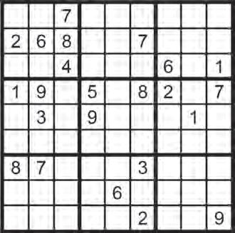 Each Sudoku puzzle consists of a 9x9 grid that has been subdivided into nine smaller grids of 3x3 squares. To solve the puzzle, each row, column and box must contain each of the numbers 1 to 9. Puzzles come in three grades: easy, medium and difficult. Level: Medium