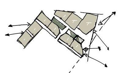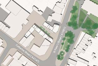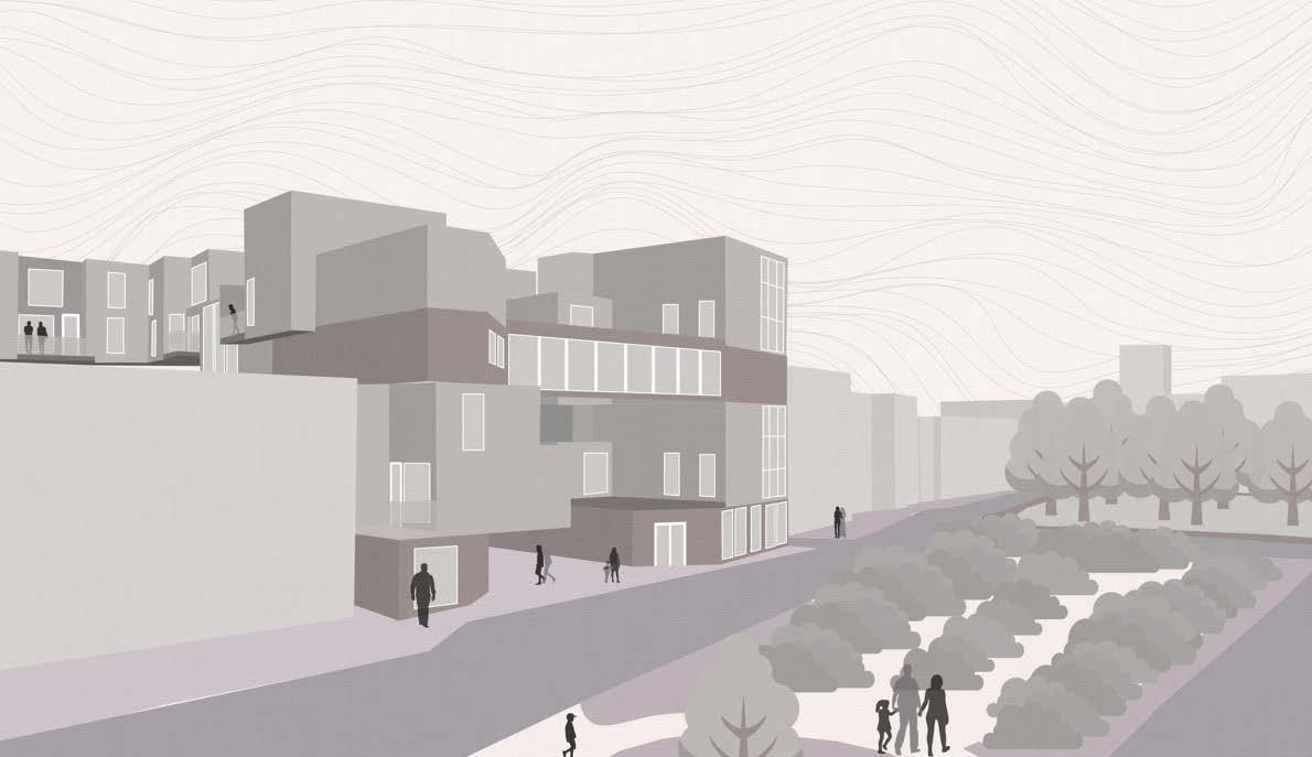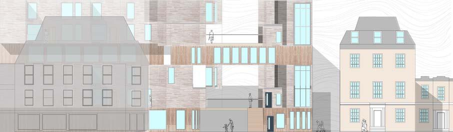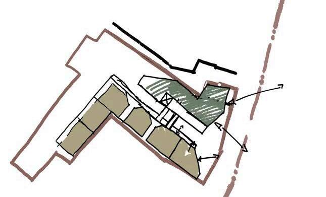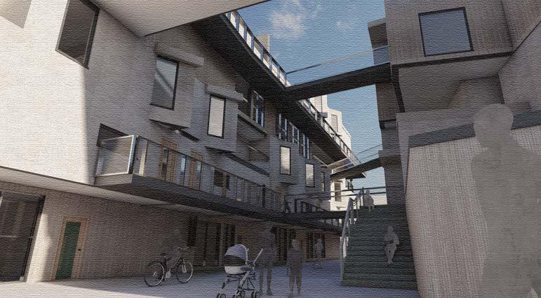 The design was moslty influenced by the term “ building of bridges”, there by creating forms that connected households together while seperated by a “new road” which acts as community hub connecting residents with the public that become allured by the design and shape that breaks the frontage of the street , while at the same time connecting st albans, through its angular shape that invites you in, as well creates views towards the heritage site that is the Church of St Peters.
