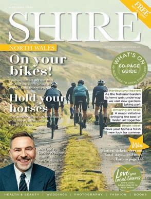 FREEWHYBUYONE? www.shiremagazine.co.uk MAY/JUNE 2024 HEALTH & BEAUTY | WEDDINGS | PHOTOGRAPHY | FASHION | BOOKS Horticultural heaven As the National Garden Scheme gets underway we visit new gardens taking part Amazing art news A major initiative bringing the best of Welsh art together Bright ideas Give your home a fresh new look for summer Two-wheeled action and adventure with Shire as we explore all things cycling On your bikes! WHAT’SON 60 6 0PAGE GUIDE TO LOCALEVENTS 20 2 4 ! 60-PAGE GUIDE The power of equine therapy making a di erence to people’s lives Hold your horses Love your local towns Shire visits Whitchurch Win Festival tickets, days out, hotel stays…and more! Turn to page 145 We talk to David Walliams about his Awful Auntie! SHROPSHIRE & MID WALES Cover MayJune 2024 (Shropshire + Mid Wales) DB.indd 1 26/04/2024 12:41