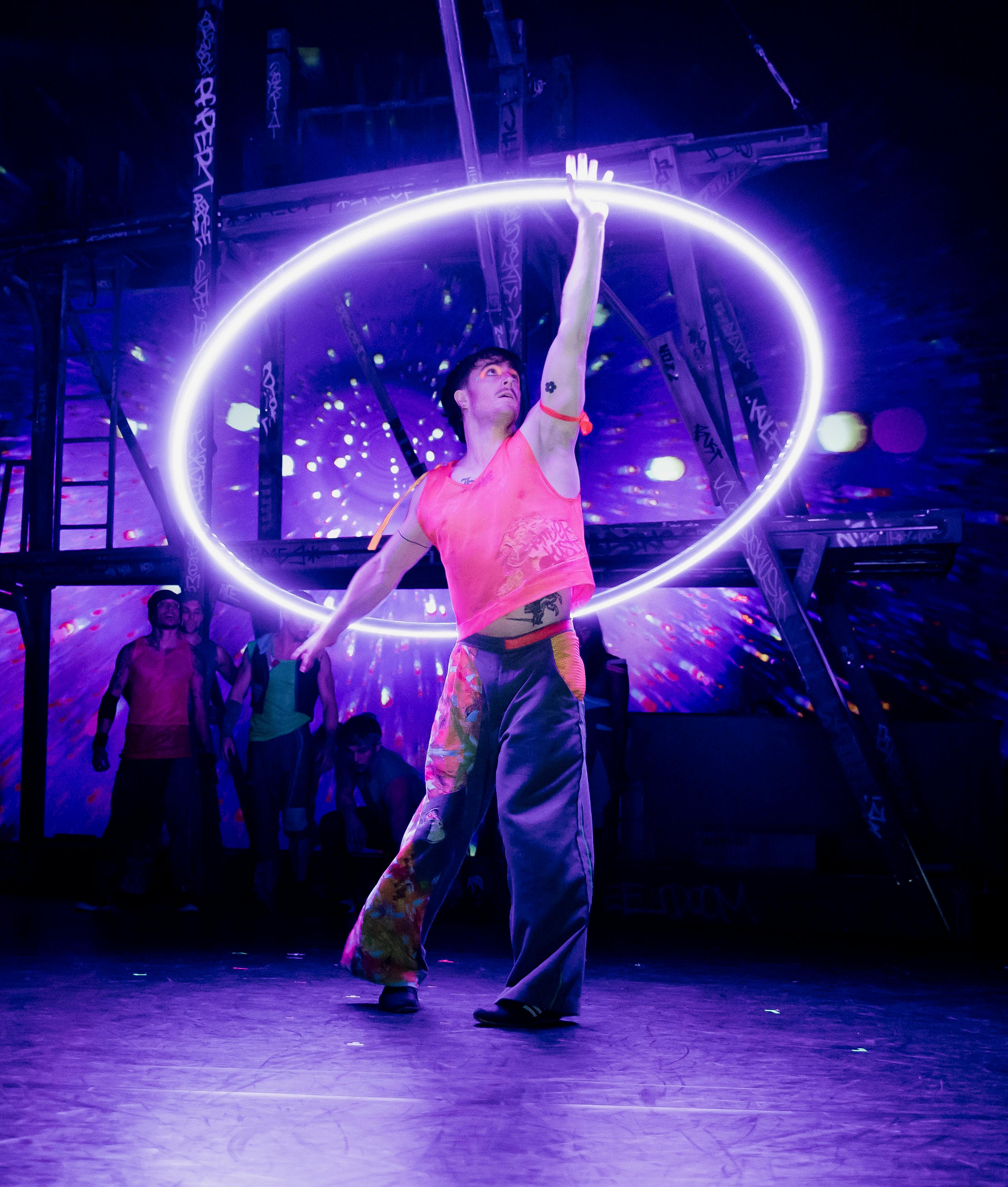 The scene is set in the heart of a city, in a public space where people seek refuge and a chance to shed their anonymity: a place where identity is forged and individuality is expressed. The stage fizzes and thrills with infectious energy and phenomenal physical feats, as the 9 talented cast members from Canada’s famed contemporary circus crew Cirque Éloize perform against a kaleidoscope of eye-popping video projections.