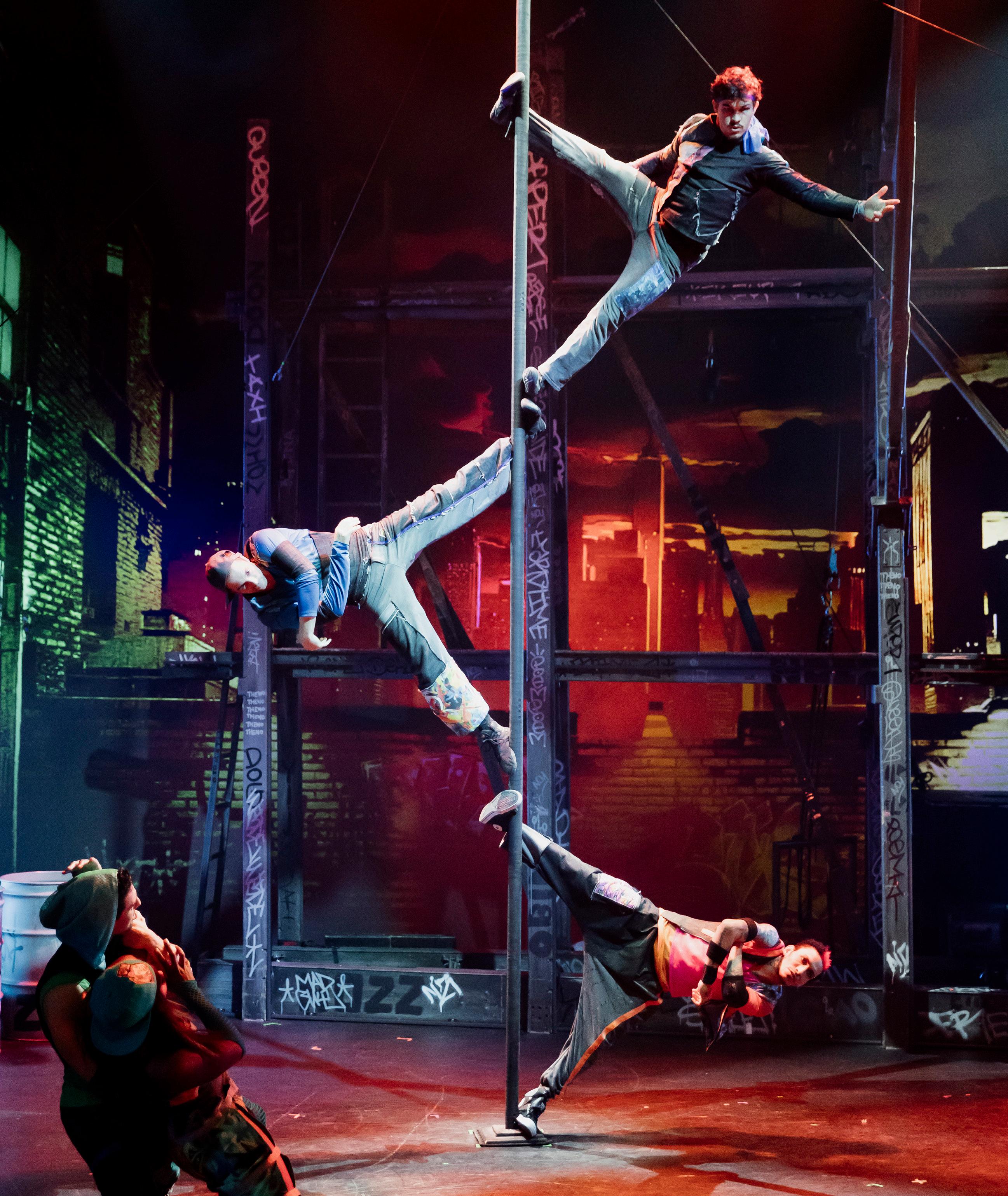Mixing urban dance, daring stunts and dazzling acrobatics.