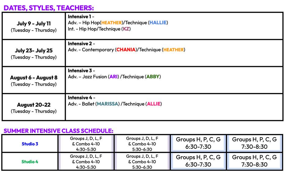 Dancers are encouraged to take advantage of some additional pop up classes that will be offered this summer! You can register for classes on the events Page in your Parent Portal!