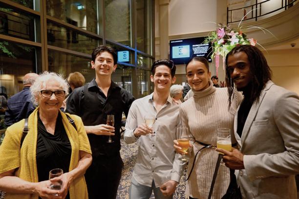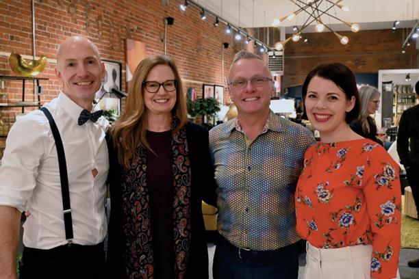 Photos (clockwise from top left): Post-show reception for donors and sponsors at the Royal Theatre. Photo: Anne-Sophie Cournoyer; Dance Victoria sponsors Scott Elias and Darren Ausmus of Luxe Home Interiors and Lise Gyorkos of YAM Magazine with Gillian Jones. Photo: Anne-Sophie Cournoyer; Andy Stephenson of Sotheby’s Realty & Molly MacShannon of RBC.