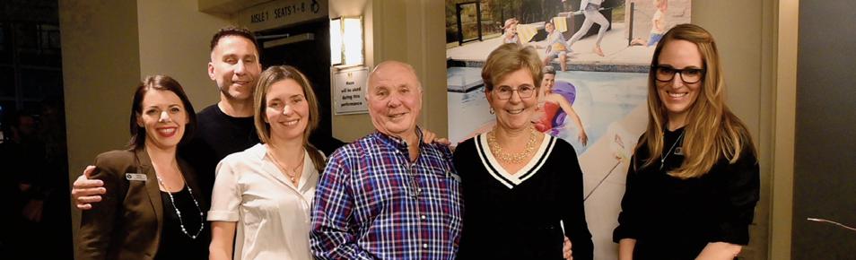 Top left: the Hollis family of Derma Spa, Season Sponsor for Dance Victoria, with Gillian Jones and Dayna Szyndrowski, Dance Victoria General Manager. Photo: Anne-Sophie Cournoyer; top right: Beautiful arrangement by Floral Sponsor Poppies