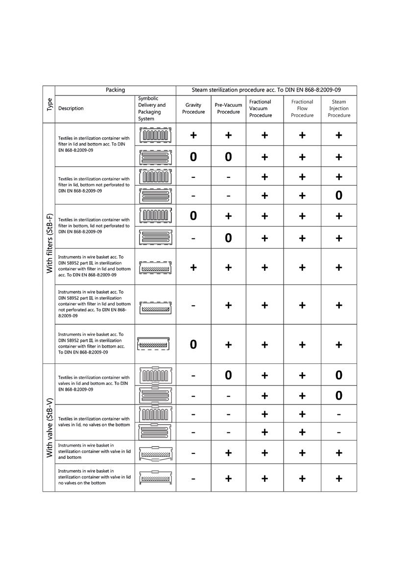 Stack the containers up to a max. height of 45 cm to ensure effective air release and steam** penetration