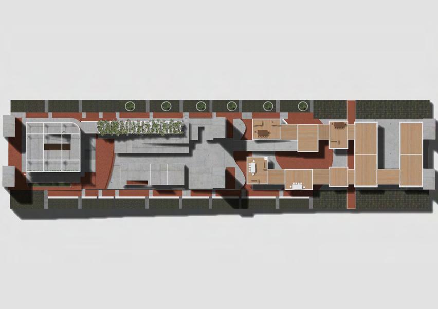 on perimeter Natural Ambience & Thermal Greenery Vertical Garden Liniear Mass Circulation Liniear Arrangement Transparent Mass Art Therapy Exhibition Creative Space Low Sunlight Contoured Therapeutic Design