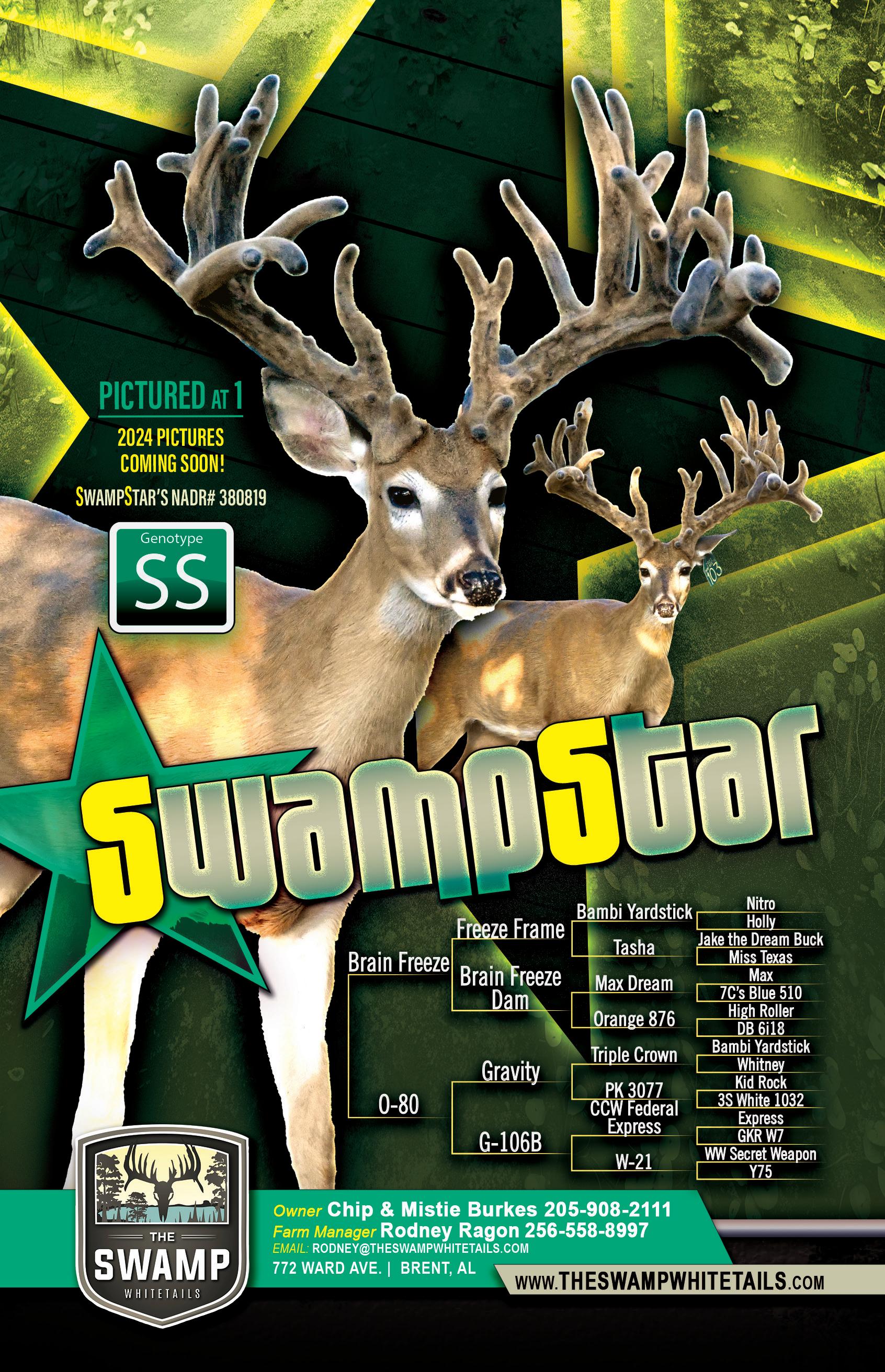 THE SWAMP WHITETAILS ~ Chip & Mistie Burkes, Rodney Ragon, Farm Mngr. Ph: Chip & Mistie: 205-908-2111, Rodney: 256-558-8997, Email: rodney@theswampwhitetails.com 2 Industrial Rd., Brent, AL 35034