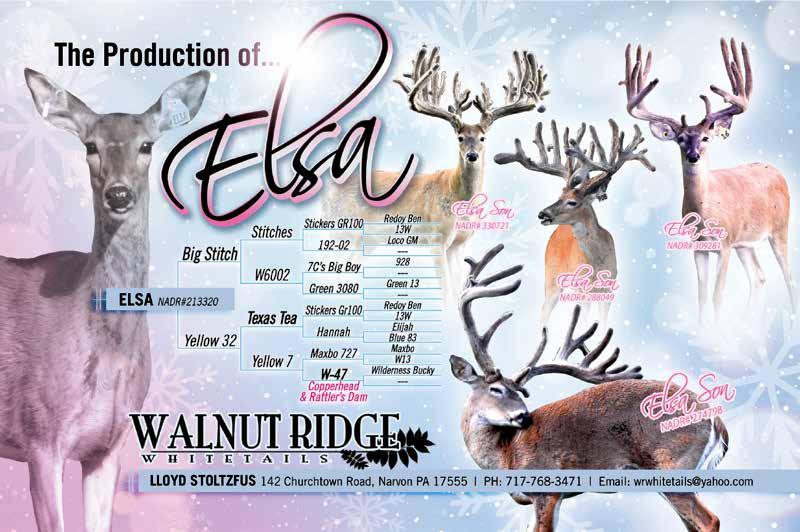 In the past year not only has Hassig expanded his number of employees, he has also added six more acres of deer pens to his farm. While wellknown buck Back in Black remains their Number One Breeding Buck, whose semen routinely sells out each year, Prime Acres also relies on embryo transfer to infuse fresh genetics into their herd which averages between 350 and 400 head of deer. “We focus on eight to 10 different lineages that have always done well in the auction room and private sales,” Hassig explained. “That have a lot of good production and