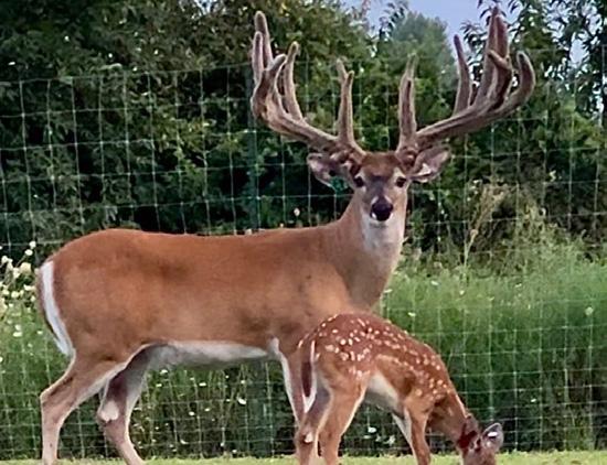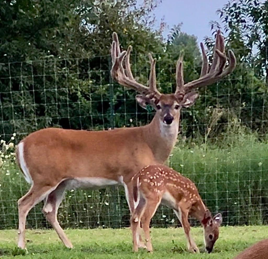 Sire is Double T (Bigger buck picture) Dam is Thunderstorm Daughter Ezra & Cletus Bontrager Shipshewana Indiana 260-768-4284 Twin Maple Deer Farm