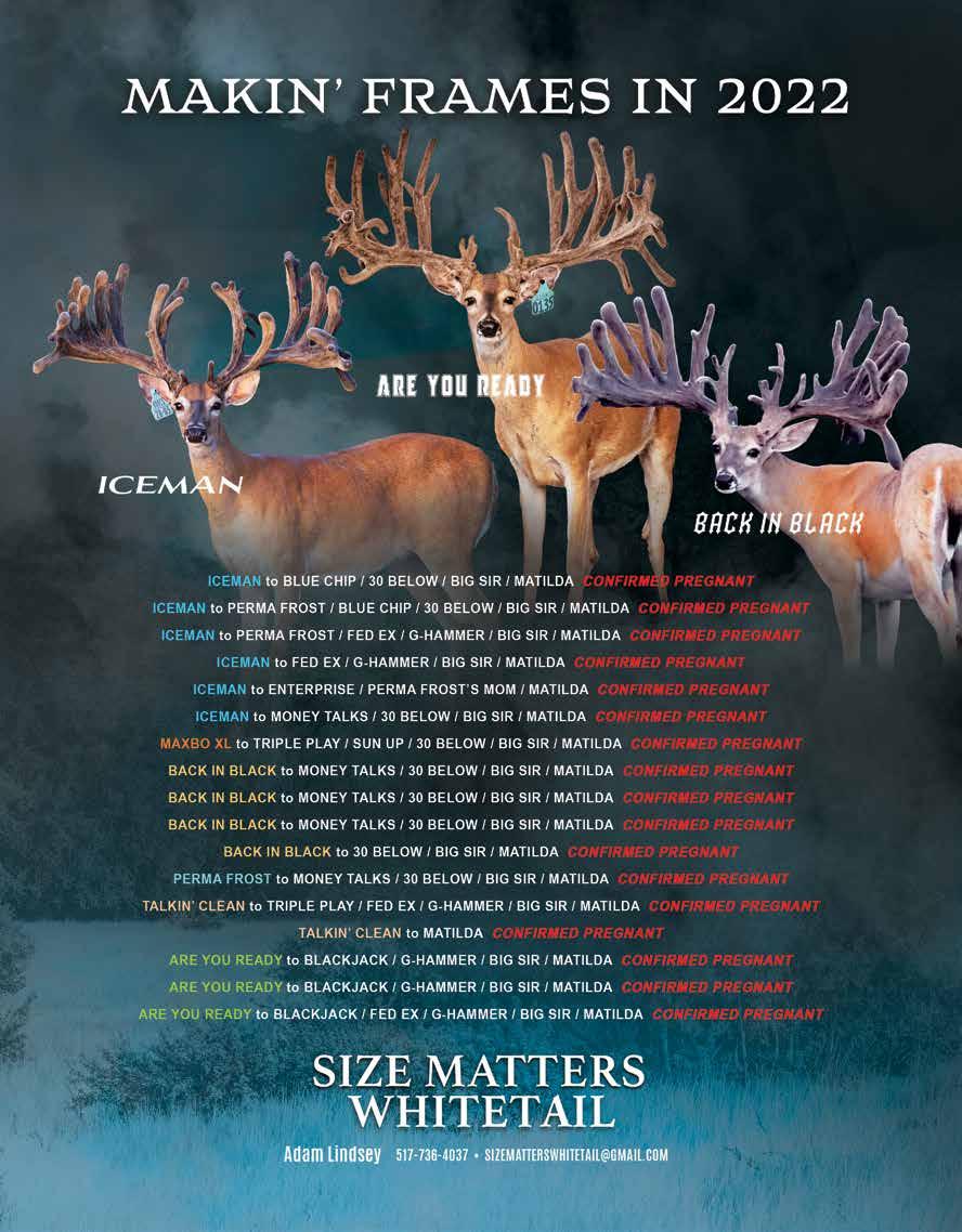While the goal of advertising is to showcase your products and services, it’s also to maintain a consistent presence to those seeking what you have to offer. “I’m excited and feel very fortunate to make this my full-time endeavor,” Sam said. Thus far her favorite ads are those featuring bucks, followed by ads pertaining to antler replication, food plots and nutrition.