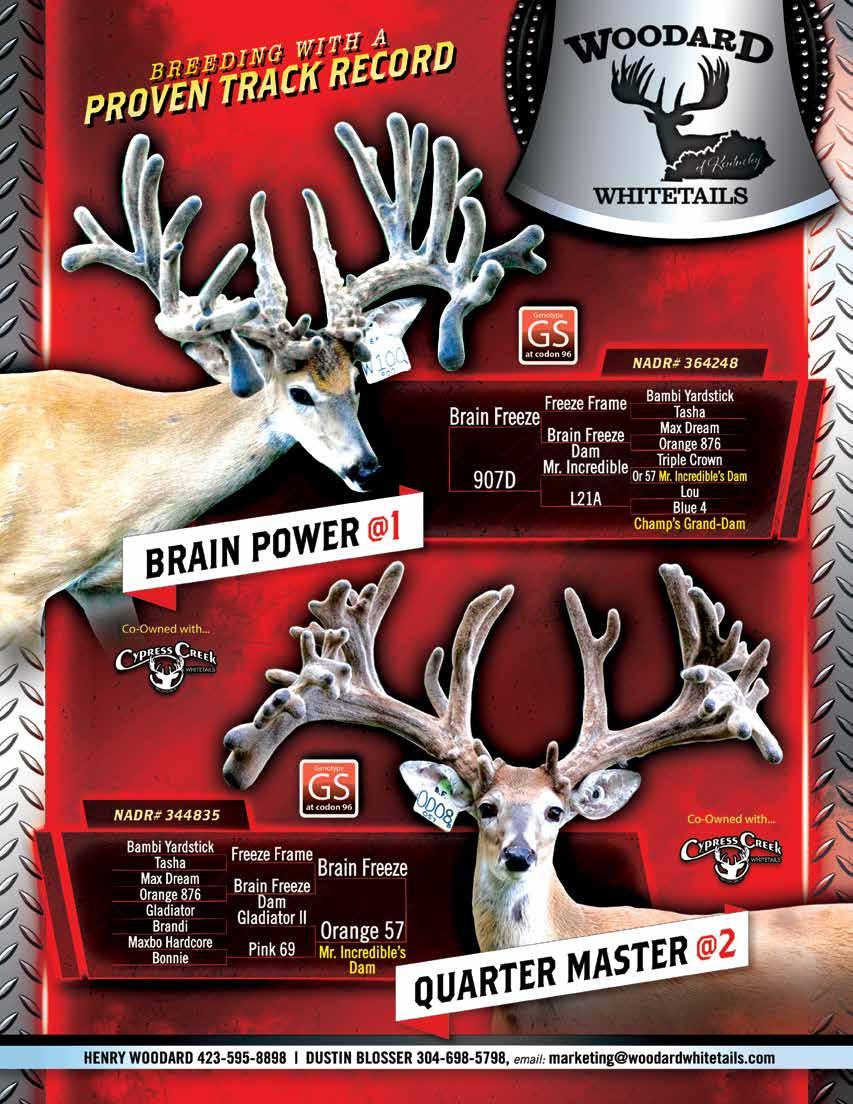 1 Activity Pages ............................................................ 34, 36 Advertising Information 48 Antler Replication TechniquesWhich One is Right For You ....................................... 20 Antler Competition 4 Board of Directors ............................................................. 1 Business Cards................................................................ 31 Convention Booths 11, 28 Convention Photos .................................................... 19, 39 Convention White Board Jokes ...................................... 24 Deersites.com Website Information 22 Fallow Deer Gaining in Demand and Popularity 16 Invest in Semen Straws Wisely and Thoughtfully .......... 15 Meet the Team - Sam 46 Membership Application 42 President’s Message ......................................................... 2 Recipe - Juicy Elk Burgers 40 UDFOM Corporate Sponsors 5 FEATURED FARMS: DEER FARMING DEMONSTRATION EARNS GOLD STANDARD AT STATE FFA EVENT ............................................................. 7 THE KLEIN FAMILY DEER RANCH – OPENING THEIR DOORS THIS FALL FOR GUIDED AND NON-GUIDED HUNTS ................................... 9 ADVERTISERS INDEX: Black Label Whitetails Back Cover Blessed Bayou........................... 38 BR2 Whitetails ............................ 8 CG Financial Services 10 C&E Wildlife Products ............... 31 Cervid Solutions, LLC ............... 26 CuddliEZ 35 Dan-Inject North America ......... 32 DD Deer Farms, LLC .... In. B. Cov. EZid, LLC ................................... 35 Fox Valley Animal Nutrition, Inc ... 21 Great Lakes Sire Services ......... 12 Head Gear, LLC ......................... 30 Hilty Whitetails ........................... 47 Illini Whitetails ............................ 27 Jo Jo’s Whitetails ...................... 37 Major League Whitetails ........... 44 NexGen Animal Health .............. 25 Pine Creek Deer Farm 18 Pine Ridge Whitetails .... In. F. Cov. Pneu-Dart................................... 43 Prime Acres Whitetails 45 Purina ......................................... 23 Riverdale Feed and Grain ........... 6 Size Matters Whitetails Cover, 3 Spotted Acres ............................ 17 Thompson Trophy Whitetails .... 13 Thunder Bay Whitetails 41 Trophy Whitetails ....................... 14 Walnut Ridge Whitetails ............ 22 Woodard Whitetails ................... 33 Zehr Bros Whitetails 29