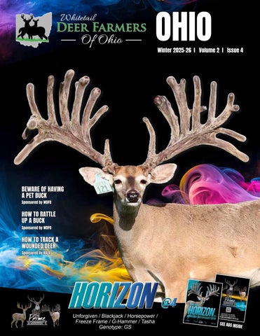Summer 2023 l Volume 6 l Issue 2 NEW YORK New York Deer and Elk Farmers Association Toxic/Blackjack/Jumbo Dream/Danger/Hardcore/Heather Black Hornet Photo By: Roger Bailey SEE AD INSIDE Major League/Bambi 20-28/Rolex/Pink 12 Venom/Judge's Prodigy/Jumbo/Big Momma Quick Silver/Thunderstorm/Arty/Roman's mom Blackjack/Major League/Gunslinger/Maxbo XL/Heather Blackjack/Venom/Judges Prodigy/Danger/Hardcore/Heather Back in Black/Major League/High Heat/Danger/Hardcore/Heather Navigator/Cruiser/Voodoo's Magic/Big Stitch/Golden Danger's sister Gladiator XL/Blackjack/Venom/Judge's Prodigy/Jumbo/Big Momma Jasper/Gunfighter/Jumbo Dream/Danger/Hardcore/Heather Cruiser/Voodoo's Magic/Big Stitch/Golden Danger's sister Black Hornet/Major League/Bambi 20-28/Rolex/Pink 12 Toxic/Blackjack/Jumbo Dream/Hardcore/ Heather Cruiser/Jumbo Classic's sister Excit ng Pedigrees at MountainSide Whitetails!! Exc ting MountainSide Whiteta ls!! @2 @2 @2 @1 @1 Jumbo Classic/Danger/ Black Hornet Jumbo Classic/Cruiser/ Navigator/Cruiser/ Jasper/Gunfighter/Jumbo Dream/ Hardcore/Heather (see cover) Voodoo's Magic/Big Stitch/Golden Danger's sister Danger/Hardcore/Heather Bucks at MountainSide Whitetails (photos taken 6/19/23) Contact Us For Pricing and Availability Dana & Ella Hoover 4456 Champlin Rd Phone: 315.595.2202 PennYan NY 14527 Email: dana@abcmailbox.net Photo Taken June 24th 2023 @2 EFFECTIVE BOTTLE FEEDING Tips from Woodard Whitetails Sponsored by Kala PENNSYLVANIA DEER FARMERS SHARE “If I Knew Then What I Know Now – What I May Have Done Differently” Sponsored by pdfa TREASURING HUNTING OPPORTUNITIES SHARED MEMORIES WITH JAKE ANDERSON Sponsored by KALA