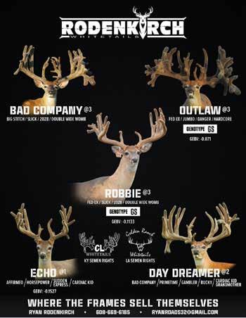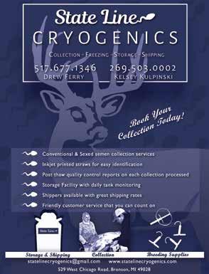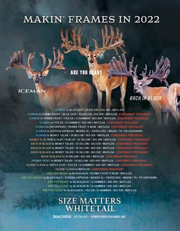 Fall 2022 Volume 15 Issue Quest for Michigan’s Best ACT PROMPTLY TO TREAT DAMAGED OR INFECTED ANTLERS HOW TO CORRECTLY LINE BREED AND WHY YOUTH HUNTING FUELING PASSION FOR THE OUTDOORS SAVE THE DATE!! UDFOM ANNUAL CONVENTION MARCH 3RD & 4TH 2023 SEE AD INSIDE TRIPLE CROWN MAXBO XL SONIATriple XXX @ 3 Industry has been focused on Non-Typicals for years and it’s slowly transitioning back Typicals. next level whitetails is already there! Our lodging offers southern hospitality and family feel with first-class meals, accommodations and guides. Breeding with maternal anchor does and offspring: Patrick, Heather, Blue 37, Matilda, Sonia, Sofie and many more just name few. embryo production with industry leading bucks (229) 805-0390 breeding operation + FRONT COVER BUCK FULL PAGE AD Inside Front Covers: (seperate lot) Spring, Summer, Fall & Winter 2023 Full Page Ad Back Covers: (seperate lots) Spring, Summer, Fall & Winter 2023 Full
