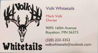 Treasurer Volk Whitetails 9095 160th Ave Royalton, MN 56373 320-232-3352 volkwhitetails@outlook.com